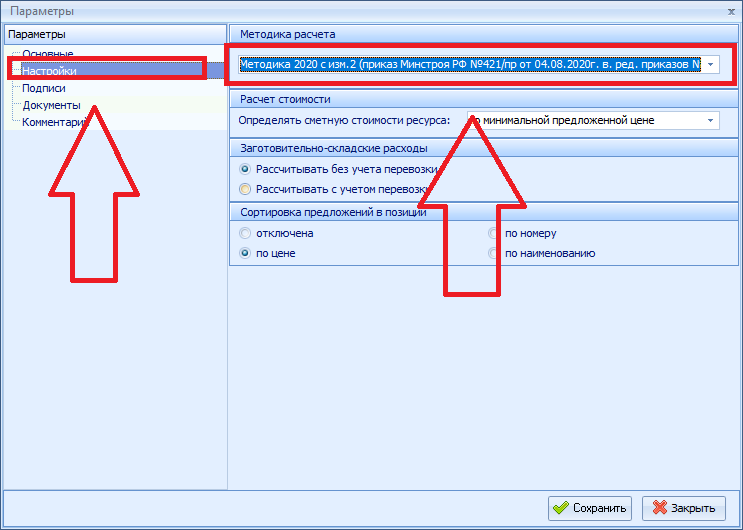 Появился выбор методики расчета в параметрах локальной сметы и конъюнктурного анализа